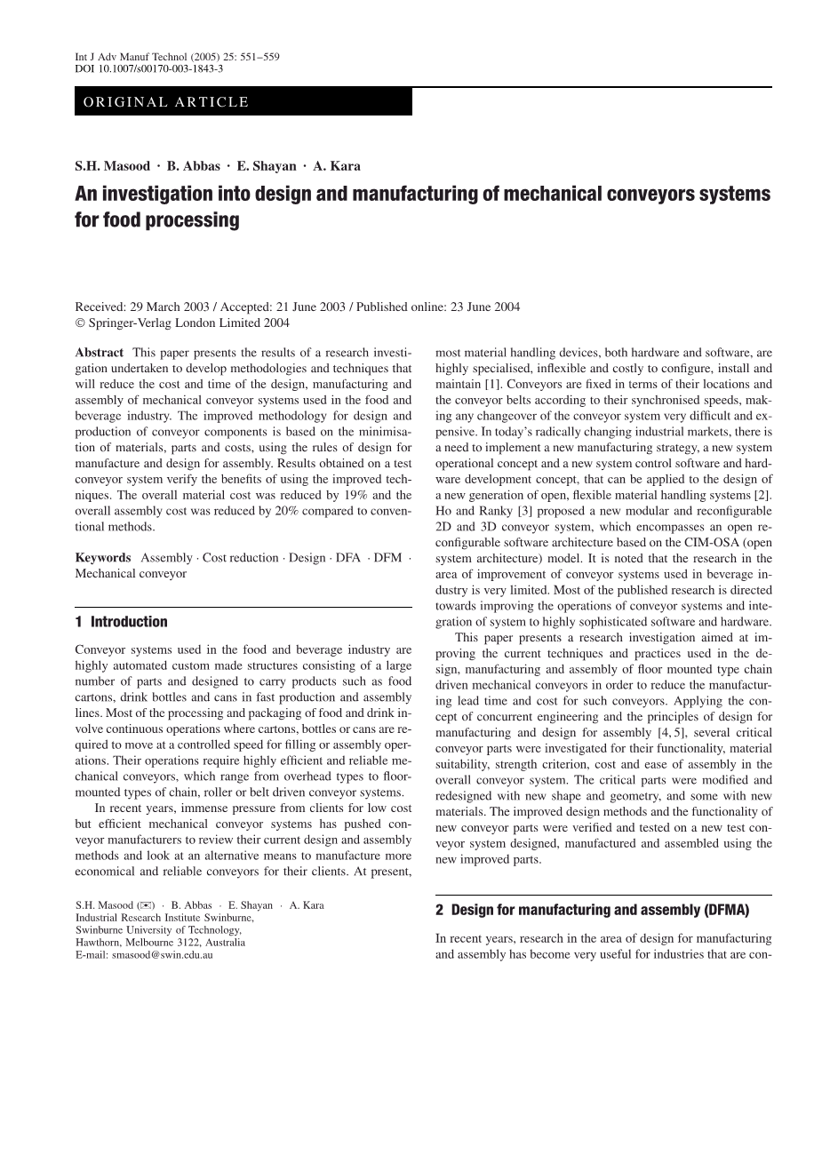 近年来,制造和装配设计方面的研究已成为制造企业非常有用的帮手,他们正考虑利用这些研究来改善他们的设施和制造的方法。不过,一直很少有涉及在输送机方面的研究,特别是越来越多的基于传统设计方法的图纸数据和输送机设计过程的重复设计问题。大量的已经调查了有关DFMA的论文和应用了各式方法为了让被测试公司达到经济、高效和成本效益的成果的论文已经发表。