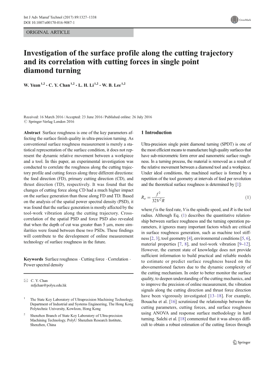 沿切削轨迹和切削力的单点金刚石切削表面轮廓的相关性调查外文翻译资料