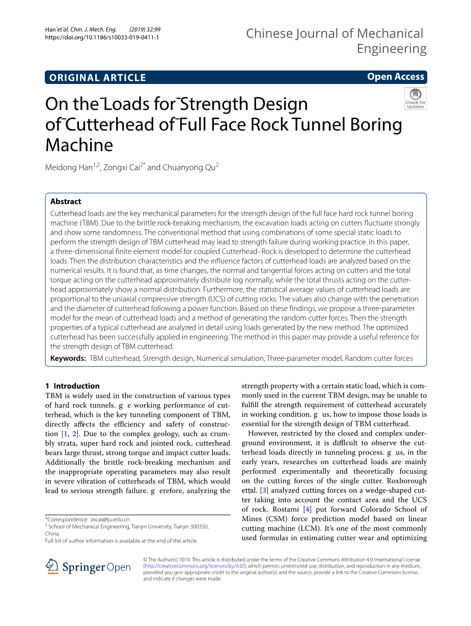 与使用实验,数值和理论方法进行了深入研究的刀具力相比,刀具头载荷的研究相对较少,仅给出了一些定性结果。但是,刀盘负载更重要到TBM设计,它们不仅仅是切削力的总和。目前,尚无TBM刀盘负荷的定量模型能够全面反映地质条件,设备结构和运行状态对TBM的影响负载。另外,刀盘负载的分布特性还不清楚,为了获得有效设计强度的刀盘载荷,本文首先建立了耦合刀盘-岩石的三维有限元模型。然后分析了该地区的分布特征及其影响因素。基于模拟研究刀盘负载结果。提出了刀盘平均载荷的三参数模型,以及产生随机切削力的方法。最后,开发了一种新的方法来分析TBM刀盘的强度。