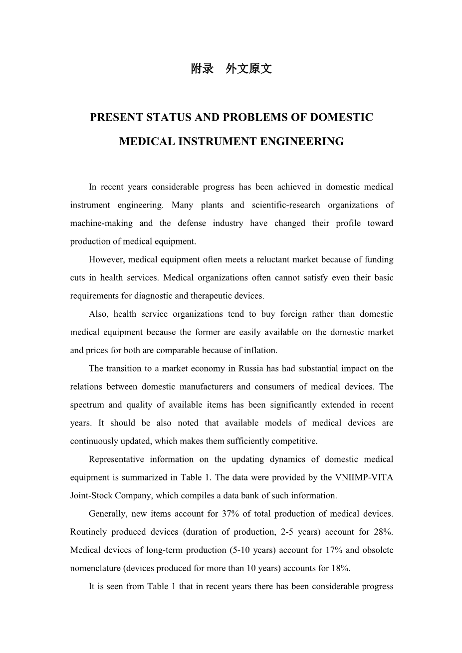 PRESENT STATUS AND PROBLEMS OF DOMESTIC MEDICAL INSTRUMENT ENGINEERING