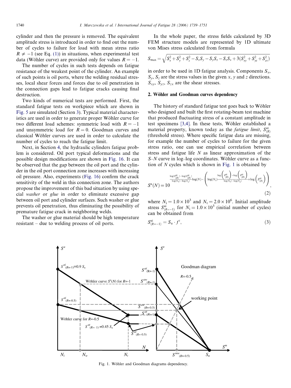 本文有两个目标。第一个目的是提出一种数值算法,采用不同的液压缸加载方案,以特定的Wohler曲线表征给定材料的抗疲劳性。为了找出古德曼曲线与沃氏曲线参数之间的关系,对单轴加载情况进行了研究。第二个目标是 本文研究了在E.C.项目“PROHIPP”下液压缸的计算,并提出了油口区裂纹问题的解决方案,以消除油在油口区中的渗透。