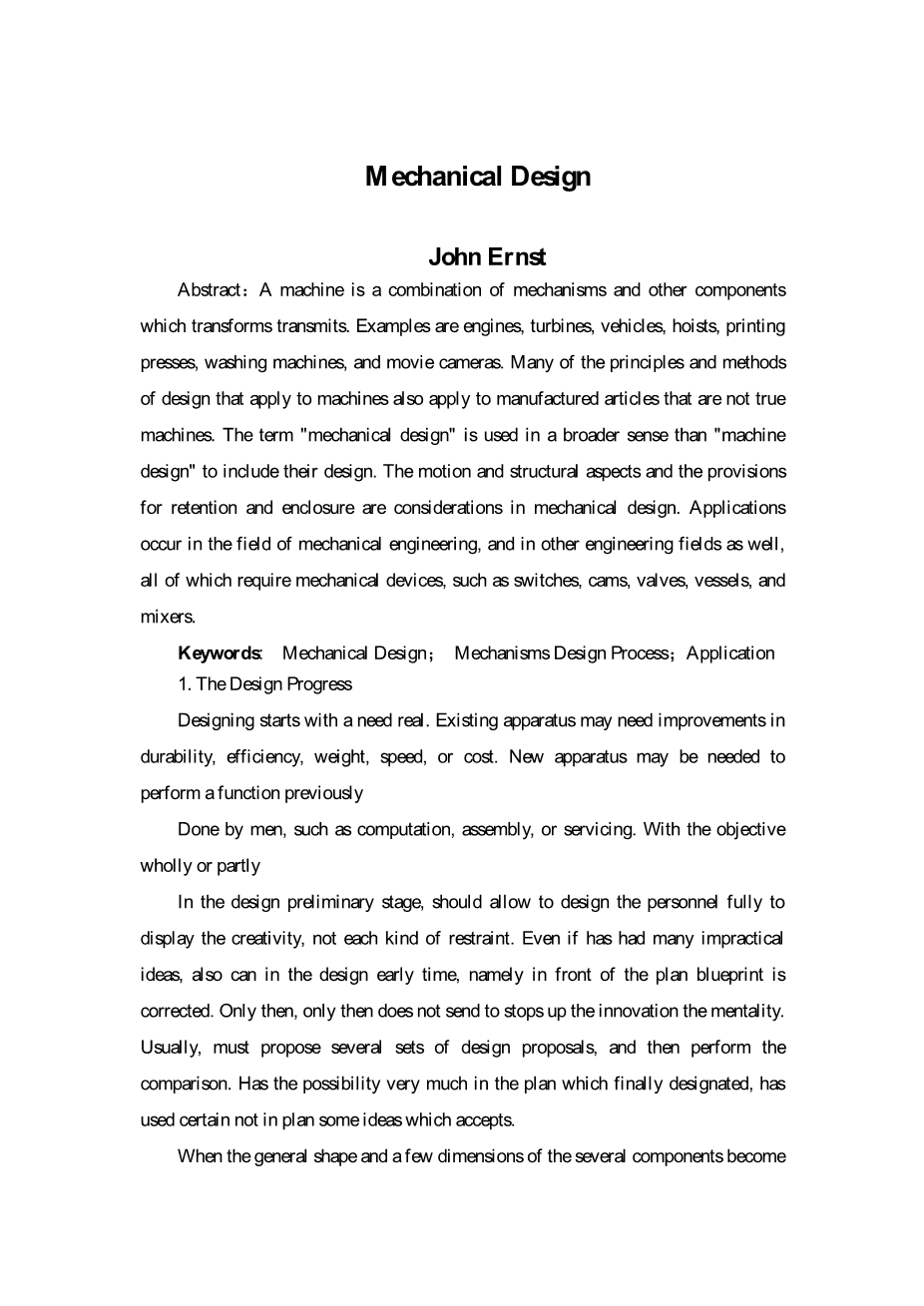 Keywords: Mechanical Design; Mechanisms Design Process;Application