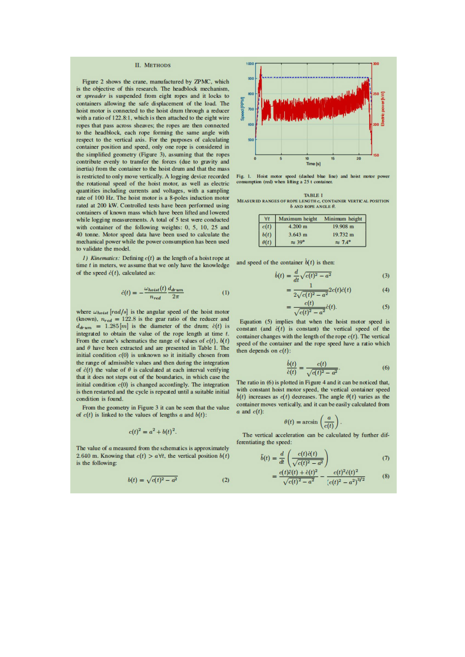 在菲利克斯托港的起重机上进行的测量被用来起升集装箱的速度和加速度。使用起升电机转速计算起升钢丝绳位置和速度,使用公式(1)计算扭矩(12)。