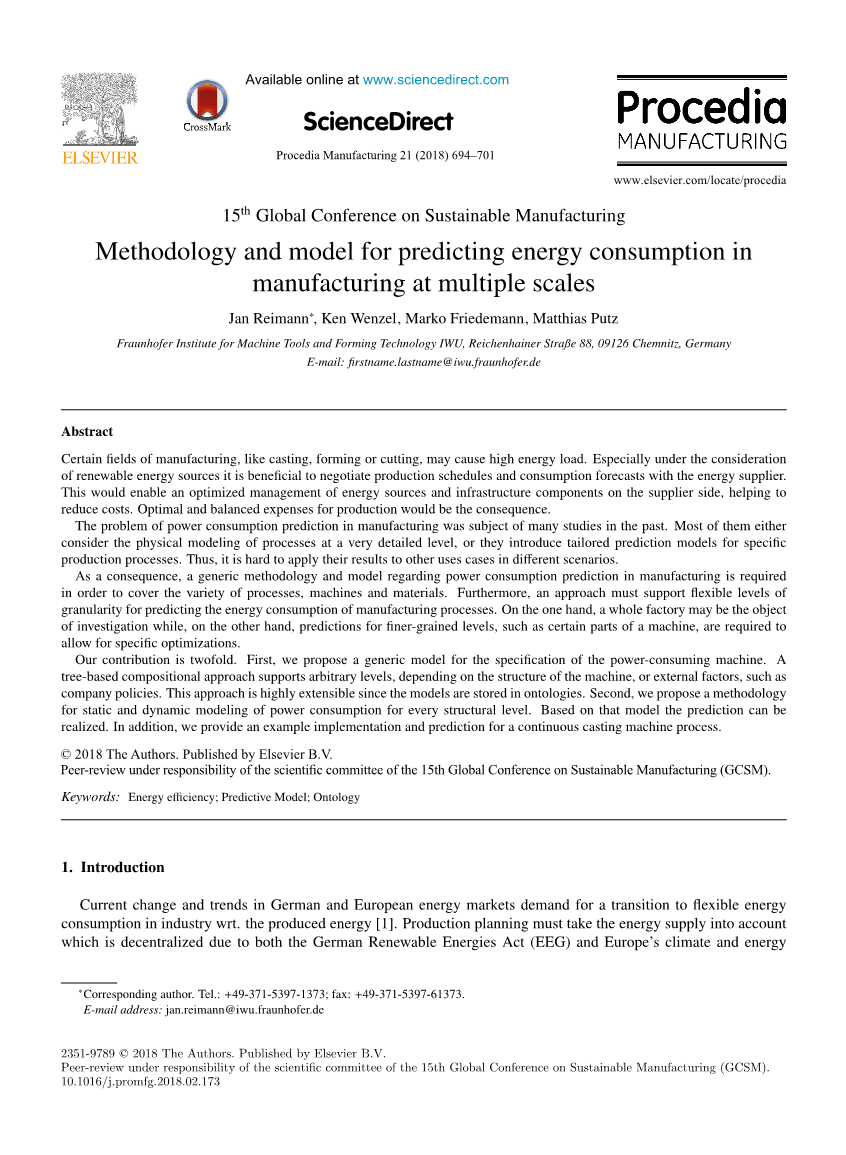 作为结果,需要一种关于制造业功耗预测的通用方法和模型来涵盖各种工艺、机器和材料。而且,这种方法必须支持适用性强的颗粒度水平,以预测制造过程的能量消耗。而另一方面,对更细粒度的预测,例如机器的某些部分,则需要考虑特定的优化。