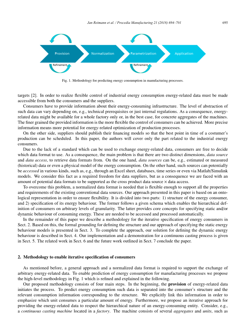 如上所述,需要一种通用方法和规范化数据格式来支持任意能源相关数据的交换。为了能够预测制造过程的能源消耗,我们在图1中提出了高级方法,并在下面进行了详细说明。