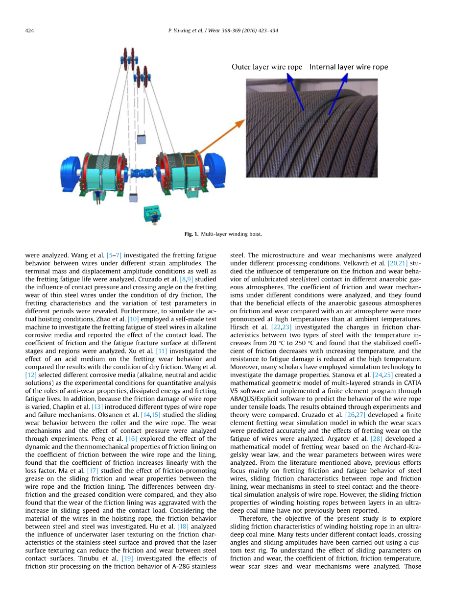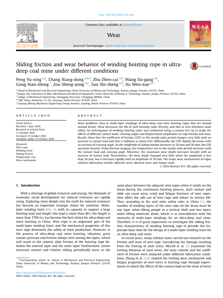 超深煤矿井中的卷扬钢丝绳 在不同条件下的滑动摩擦磨损特性外文翻译资料