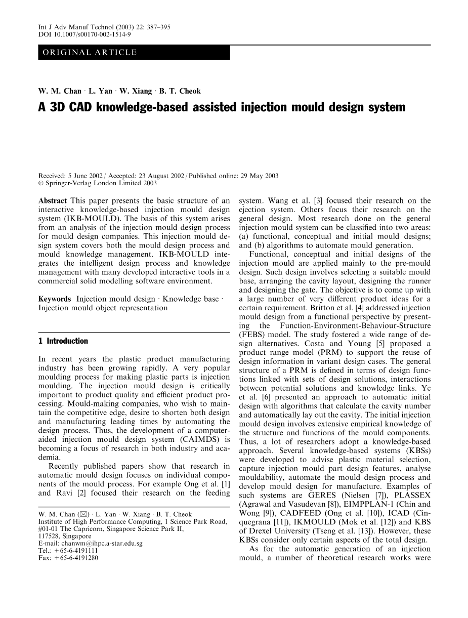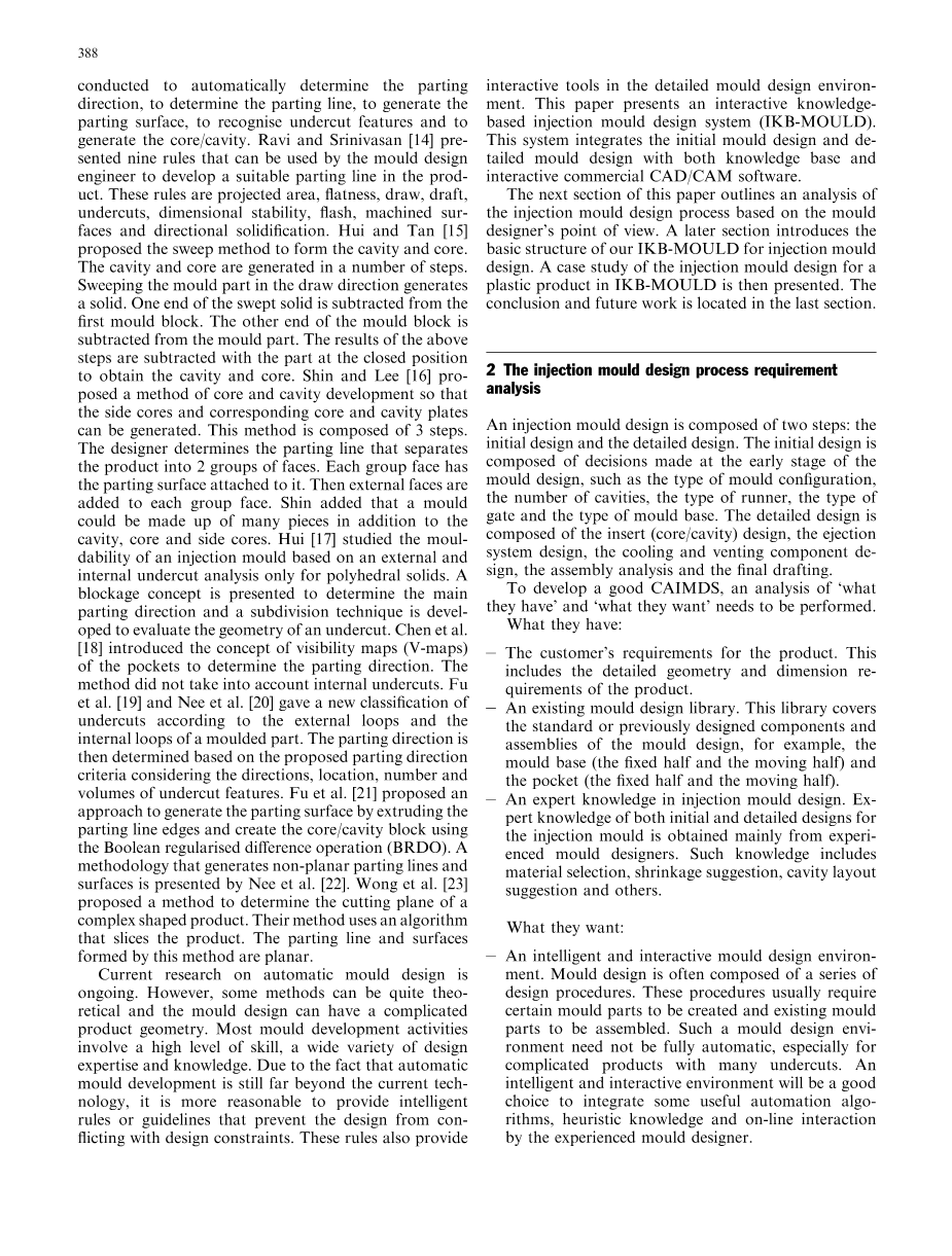 ikb模型结合使用的知识和面向对象的工具与商业固体建模软件进行功能。IKB模块在这篇论文中的介绍是以塑料成型作为开始以复杂的模具系统真实详细的图纸生产作为结束的。