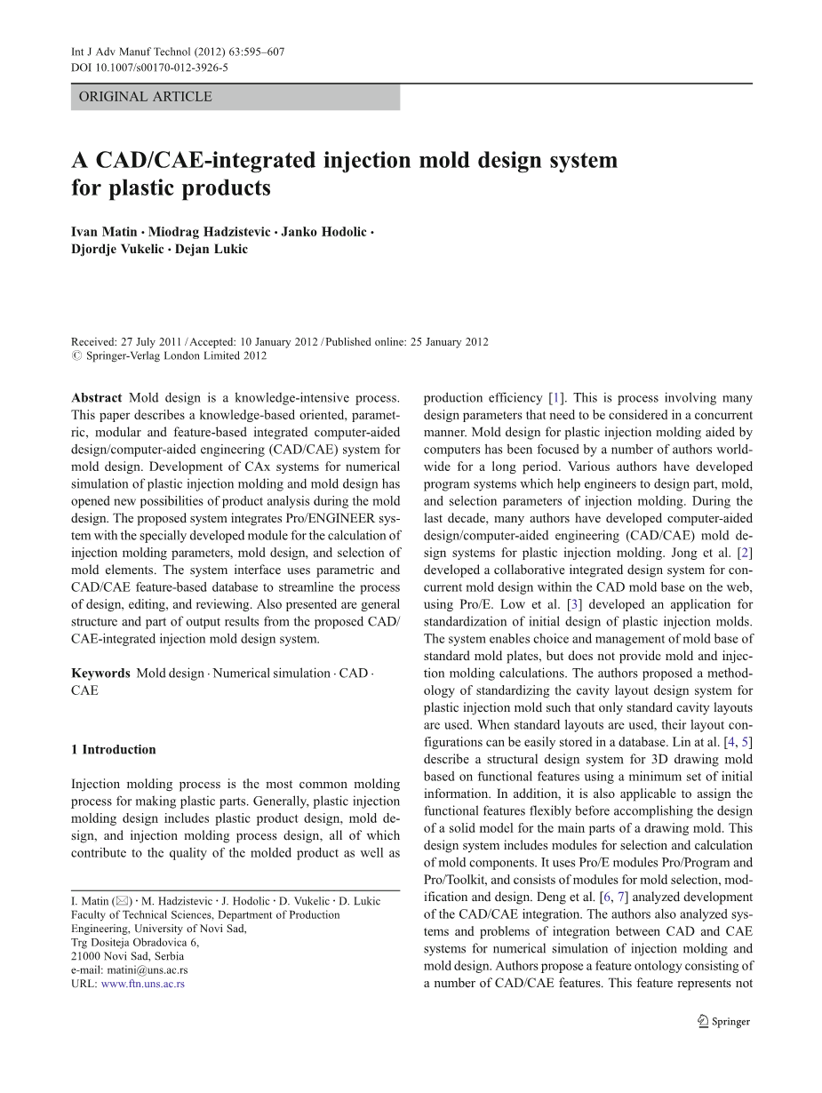 快速电加热循环注射成型技术在注塑工程中得到广泛应用。使用这种技术,可以生产熔接痕、流痕和其他的表面缺陷都没有的优良产品。然而,由于特殊的模具结构及其更糟糕的工作过程,快速电加热注射(EHI)模具随着注塑工艺的不断重复进行比常规注射容易受损失效。在本文中,首先提出对于一个大的液晶显示器(LCD)电视面板的模具研究。然后我们研究了在整个工作过程中模具温度的传递过程。最后,通过有限元仿真,对导致模具的热应力和变形的产生原因进行了分析。通过对实际失效模具的分析,证明了本文所提出的分析方法是正确的。 2011 Elsevier公司保留所有权利。