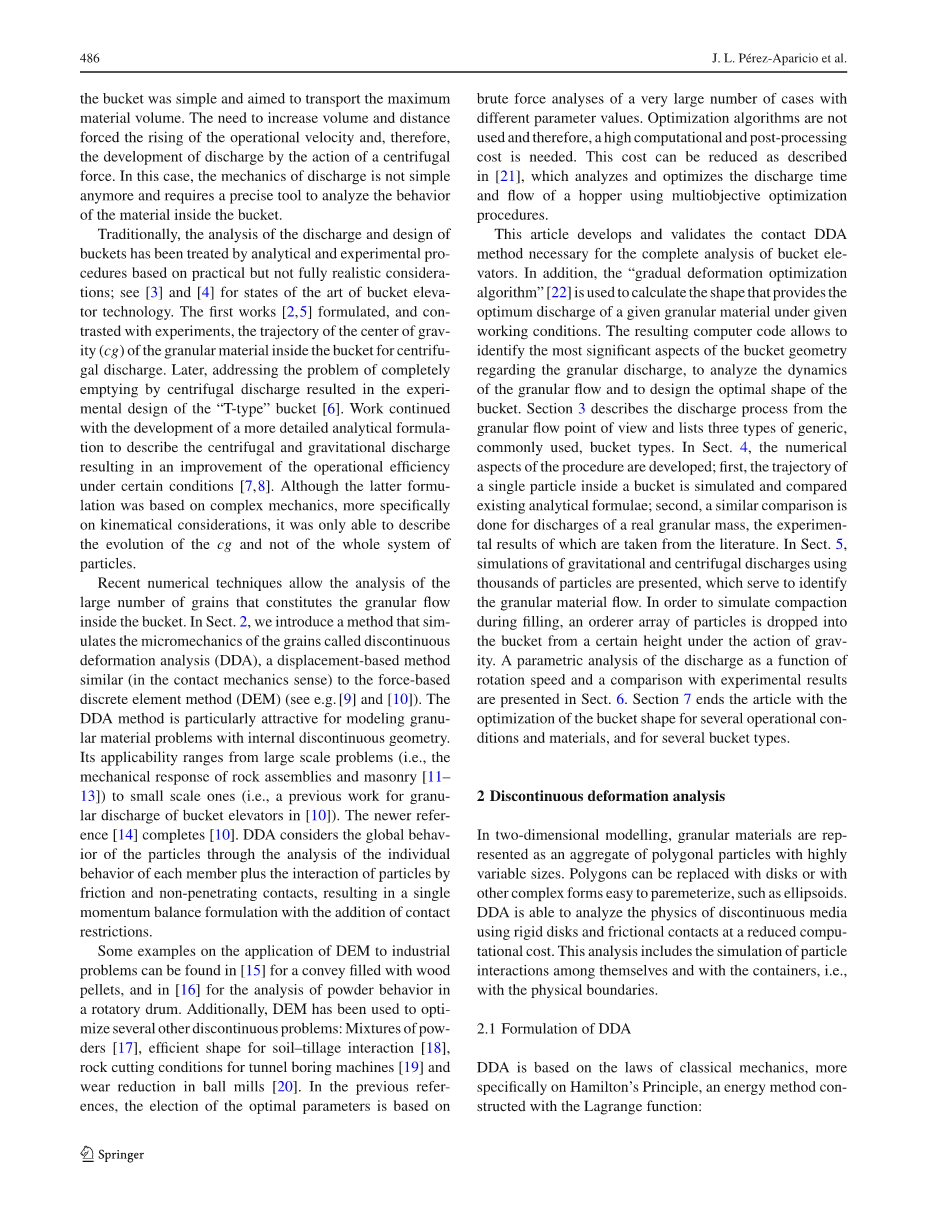 最近的数值技术分析允许大量的颗粒流入料斗内。我们介绍了一种方法,模拟采用颗粒的细观力学,称为不连续变形分析(DDA),一个基于位移的方法(在接触力学意义上)与以力量为基础的离散元法(DEM)相似(见[ 9 ]和[ 10 ])。对于内部不连续的几何LAR的物料问题,这个DDA方法模拟颗粒是特别有吸引力的。其适用大范围的问题(即,岩石组件和砖石的力学响应[ 11 ]13 ])。DDA认为全球通过个人分析颗粒的IOR,每一个成员的行为加上粒子的相互摩擦和非穿透性接触,会导致一个单一的动量平衡配方与接触限制。