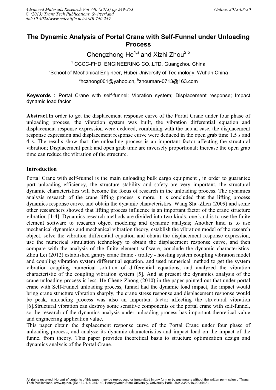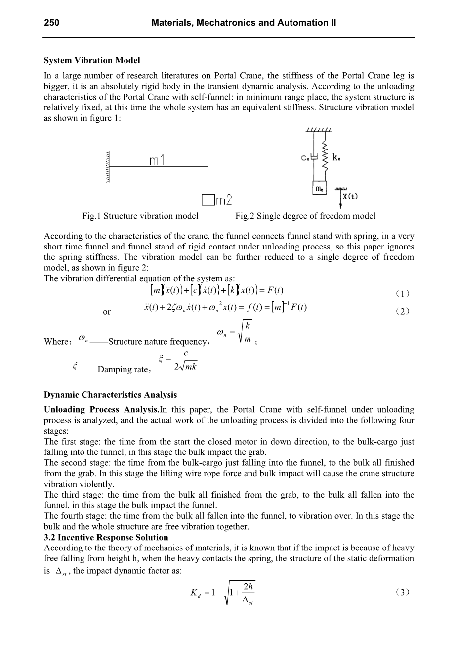 关键词:门座起重机;自漏斗;振动系统;位移响应;冲击动载因子