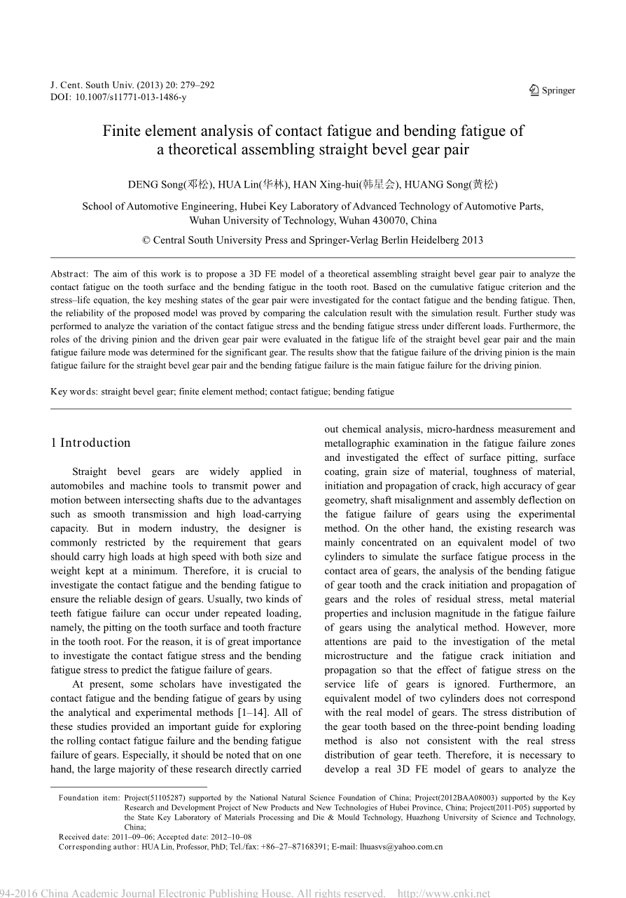 关键词:直齿锥齿轮;有限元;接触疲劳;弯曲疲劳