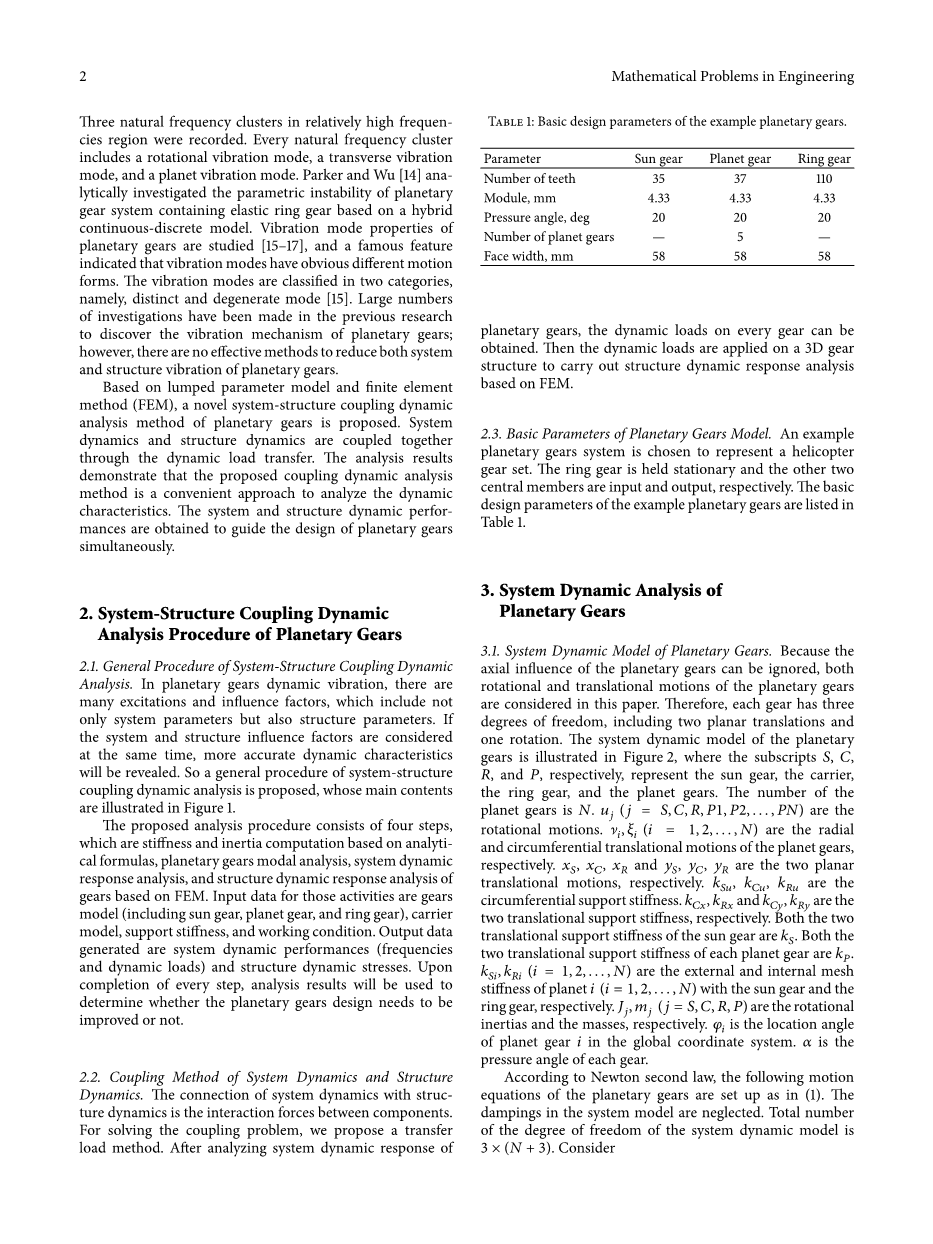 现在以安装于直升机内的行星齿轮传动系统为例来说明。它的内齿圈保持静止,另外两个中心构件分别是输入和输出。其基本设计参数如表1所示。