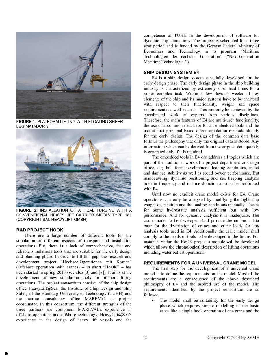 有许多不同的工具能够进行运输和安装方面的仿真。但是,缺乏全面、快速和适合早期设计及规划阶段的可靠模拟工具。为了填补这一空白,研究和开发项目“hochsee operationen MIT公司”(起重机的海上作业)-小“HOOK”,已在2013年春季开始(见[ 3 ]和[ 7 ])。它的目标是海上起重机新模拟工具的开发。该项目财团由海上重型起重机公司(HeavyLift@Sea)船舶设计办公室,汉堡科技大学船舶设计和船舶安全研究所(TUHH)和马利维海洋咨询办公室项目协调员。在这个联盟中,不同优势三合作伙伴:马利维的海上作业和海上技术经验、海上重型起重机公司在起重船软件开发和动态船舶仿真经验。该项目计划三年期间,由德国联邦政府资助经济学与技术项目“下一代海事技术”。