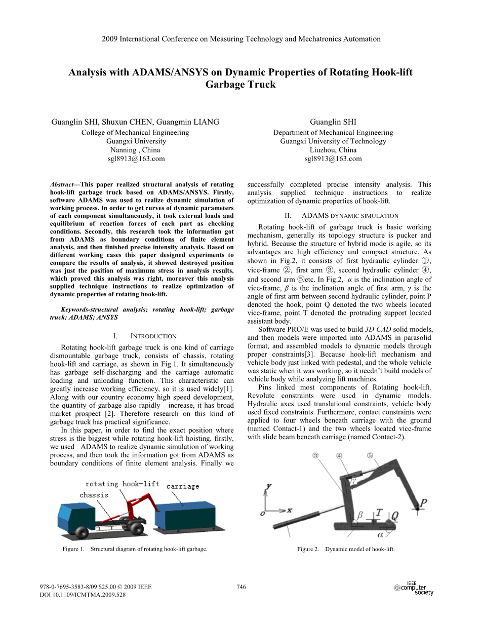 关键词:结构分析,旋转拉臂,垃圾车,ADAMS,ANSYS