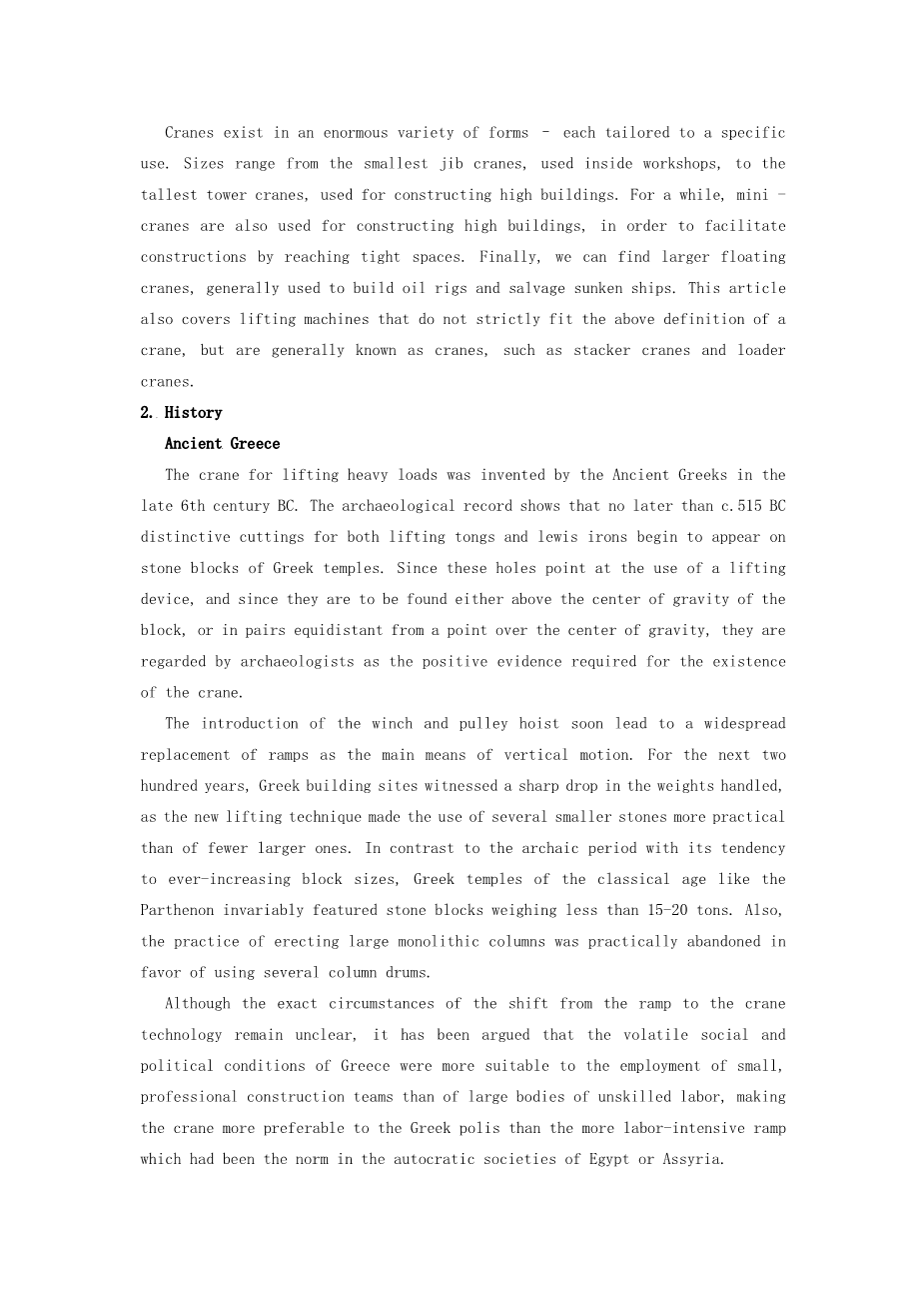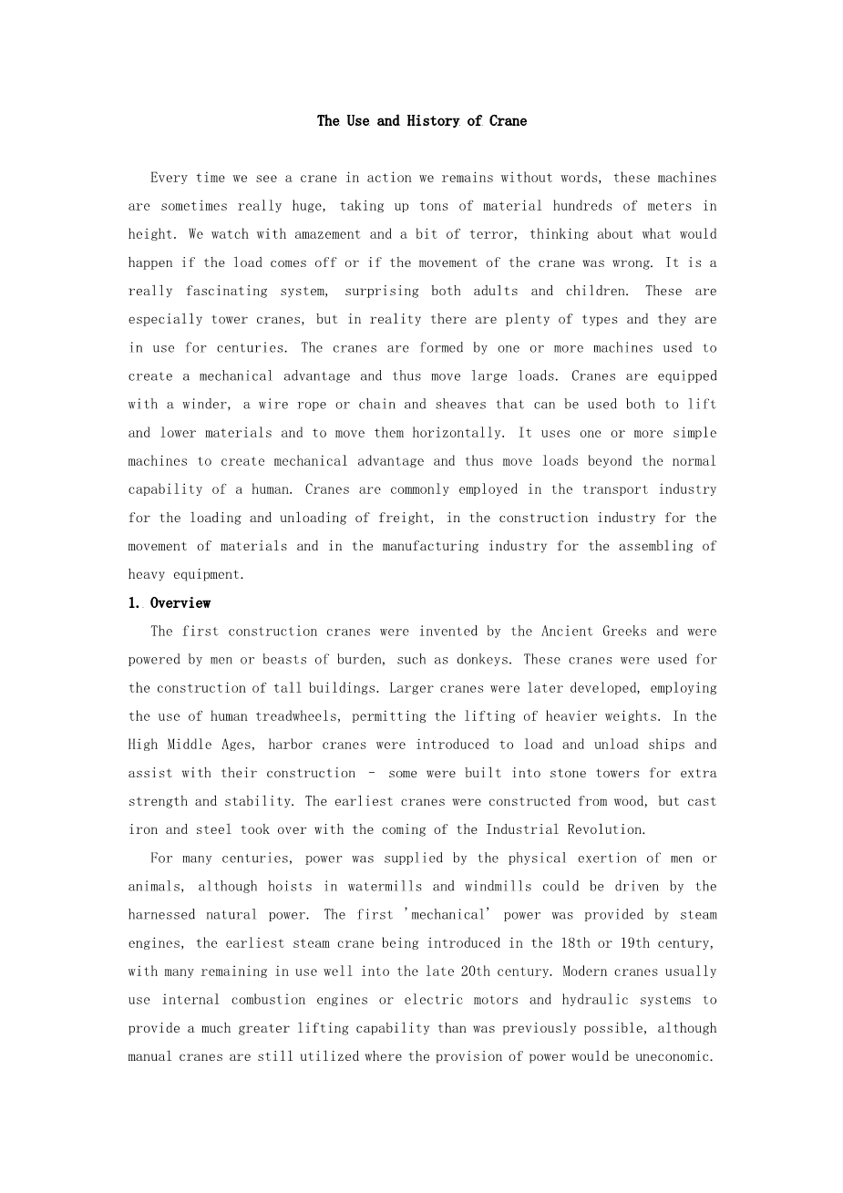 起重机的用途与历史外文翻译资料
