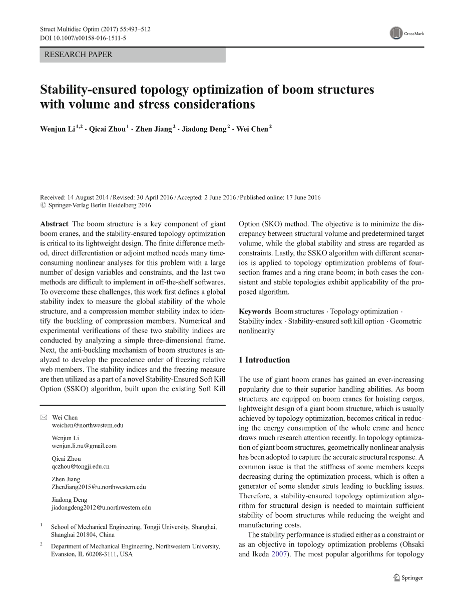 考虑体积和应力因素的臂架结构拓扑优化的稳定性保证外文翻译资料