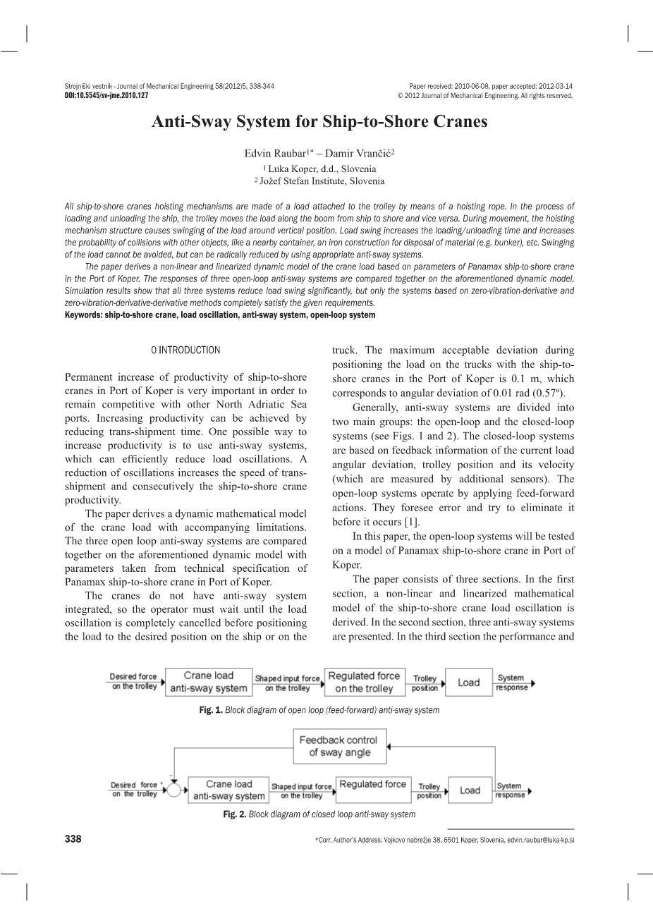 为了保持与其他北亚得里亚海港口的竞争力,永久提高船对岸起重机的生产率在科佩尔港显得非常重要。通过减少转运时间可以提高生产率。提高生产率的一种可能方法是使用防摇摆系统,这可以有效地减少负载振荡。减少振荡会提高转运速度,并连续提高船到岸起重机的生产率。
