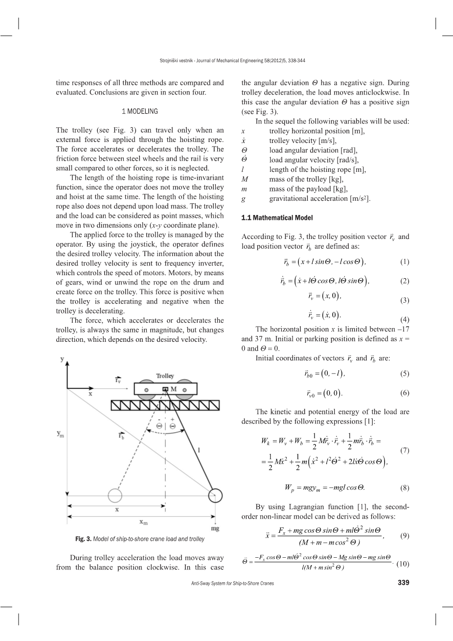 摘要:所有船到岸起重机提升机构均由通过提升绳索连接到手推车的负载制成。在装载和卸载船舶的过程中,小车沿着吊杆将载荷从船舶移动到岸上,反之亦然。在运动过程中,提升机构结构使负载绕垂直位置摆动。负载摆动增加了装载/卸载时间并增加了与其他物体碰撞的可能性,例如附近的容器,用于处理材料的铁结构(例如沙坑)等。负载的摆动无法避免,但可以通过使用适当的防摇摆系统从根本上减少摆动。