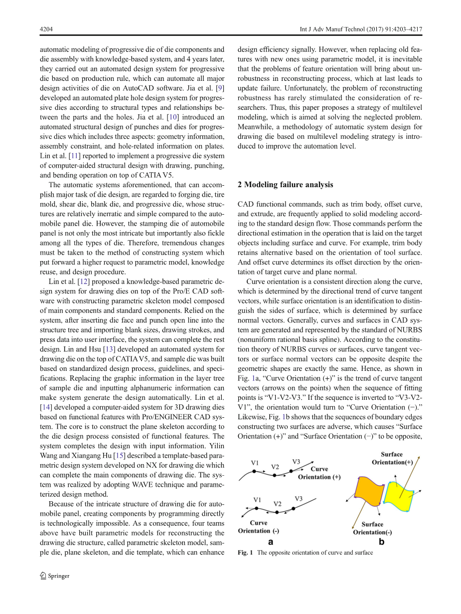 Lin和Hsu[13]开发了一个自动化系统在Catiav5的顶部拉延模,并制作了样品模基于标准化设计过程、指南和规范。替换图层树中的图形信息样品模具和输入字母数字信息可以使系统自动生成设计。林等人。14]开发了三维拉延模的计算机辅助系统。基于Pro/Engineer CAD系统的功能特点。核心是根据模具设计过程包括功能特点。这个系统用输入信息完成设计。伊林王和胡向刚[15]介绍了一种基于NX开发的拉延模参数化设计系统,该系统采用了基于模板的参数化设计方法。能完成拉丝模的主要部件。系统采用波技术和参数化设计方法实现。由于汽车覆盖件拉延模结构复杂,直接编程制作零件在技术上是不可能的。因此,四个小组上面已经建立了参数化模型来重新拉延模具结构,称为参数化骨架模型、样模、平面骨架和模具模板,可以增强设计效率显著。然而,当使用参数化模型将旧特征替换为新特征时,这是不可避免的。特征定位问题会给重建过程带来不确定性,最终导致更新失败。不幸的是,重建的问题稳健性很少刺激研究人员的考虑。因此,本文提出了一种多级策略。建模,旨在解决被忽视的问题。同时,提出了一种自动控制系统的设计方法。介绍了基于多级建模策略的拉延模,提高了拉延模的自动化水平。