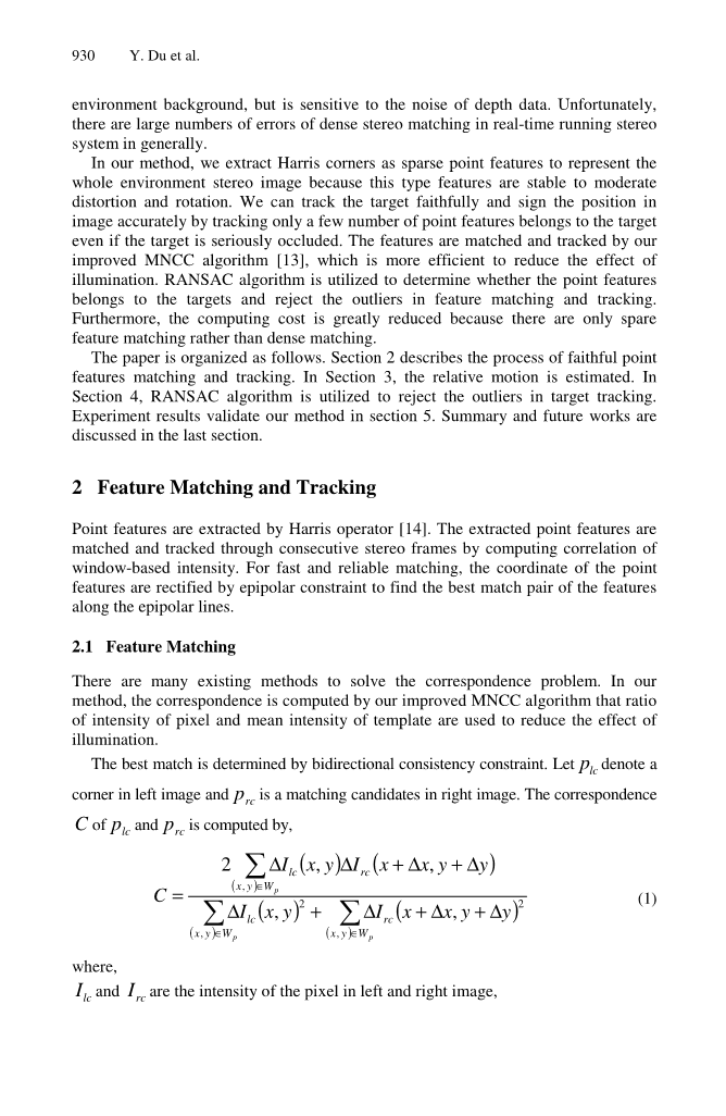 13. Du, Y., Han, J., Tang, Y.: Feature Matching and Tracking for Visual Odometry of Moblie Robot. In: Proc. International Conf. Information Computing and Automation, Chendu,China, pp. 927–930 (2007)lt;