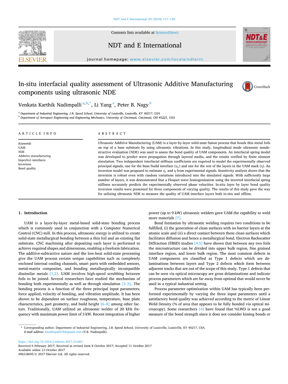 关键词:超声添加剂制造(UAM);无损评价(NDE);加性制造;不完全界面;反演;粘接质量