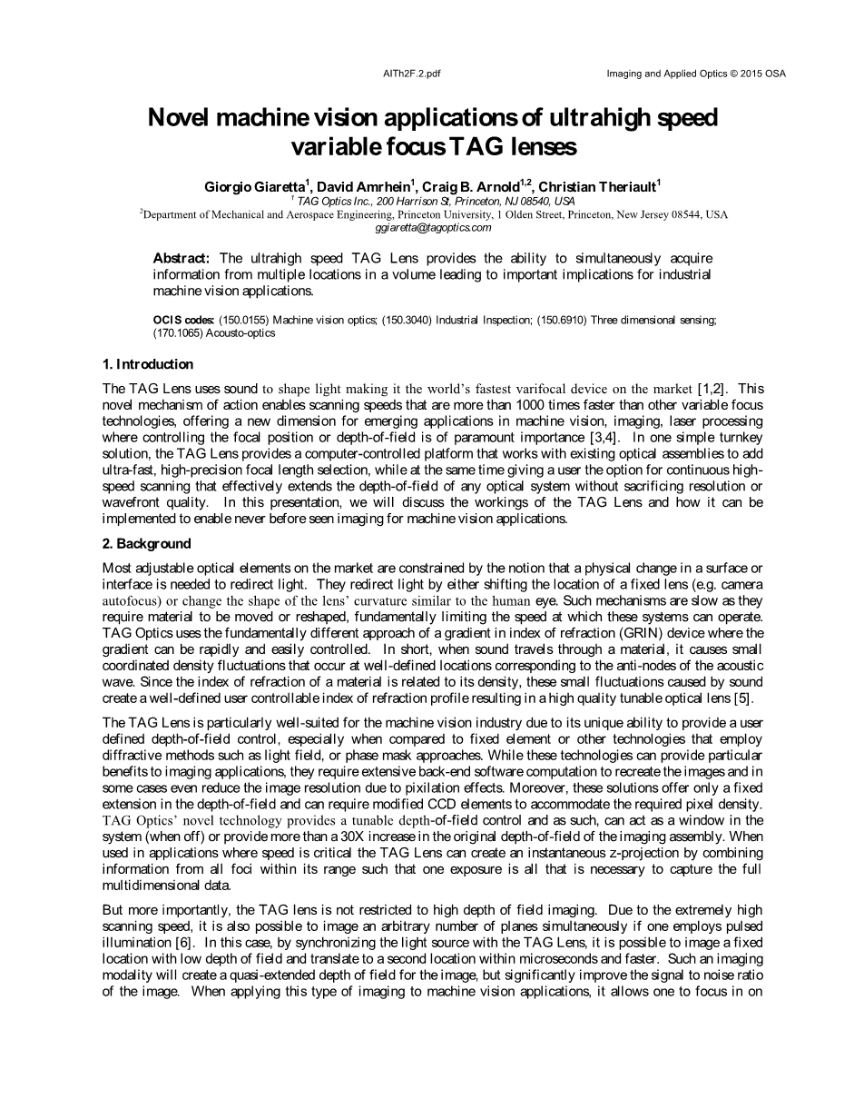 超高速可变焦TAG镜头的新型机器视觉应用外文翻译资料
