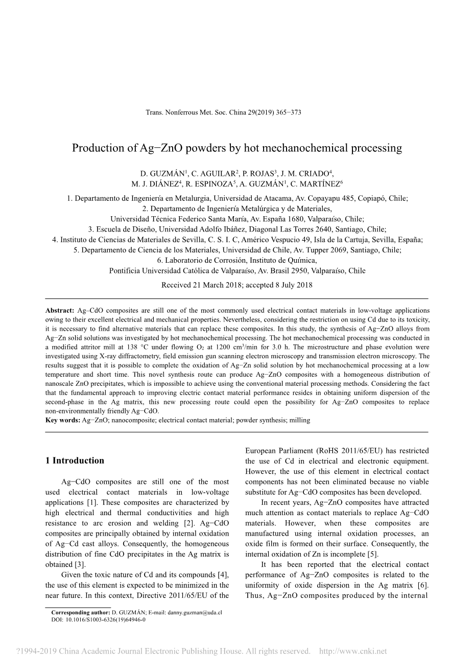 要克服上述问题,可选方案过程已经报告。TALIJAN等[7,8]研究了传统的Ag - ZnO粉末冶金工艺生产Ag - ZnO电接触材料。他们得到了氧化锌在银基体中的微尺度分布。在该合成路线中,氧化锌的分散尺度取决于银和氧化锌的初始粒度及其团聚趋势。WU等人提出了一种利用气雾化锻造技术(AIOF)制备Ag-ZnO电接触材料的方法。他们报告说,该技术得到的ZnO分布不均匀。显微组织由分布在晶粒内部的细小氧化锌和晶界处的大型氧化锌析出物组成。然而,AIOF工艺制备的Ag-ZnO材料的微观组织比铸造和内部氧化工艺制备的Ag-ZnO材料更为均匀。YI等人研究了球磨预处理对银锌粉体内部氧化的影响。他们的结论是,球磨改善了内部氧化过程中微米级ZnO析出物的分散性。GAVRILIU等人的[11]和WEI等人的[12]报道了通过一系列化学沉淀法和粉末冶金技术合成Ag-ZnO。GAVRILIU等人的[11]使用了一种Ag - ZnO粉体混合物,该混合物是由含ZnO悬浮颗粒的水溶液中的Ag沉淀湿法制备的。另一方面,WEI等人使用了分别得到的Ag和ZnO的析出物。最后,IVANOV et al[13]和JAZI et al[14]研究了共沉淀法生产Ag-ZnO合金。在该合成路线中,采用一系列化学沉淀法和热处理工艺制备了银氧化锌粉体。结果表明,该方法可以制备出均匀分布的纳米氧化锌。