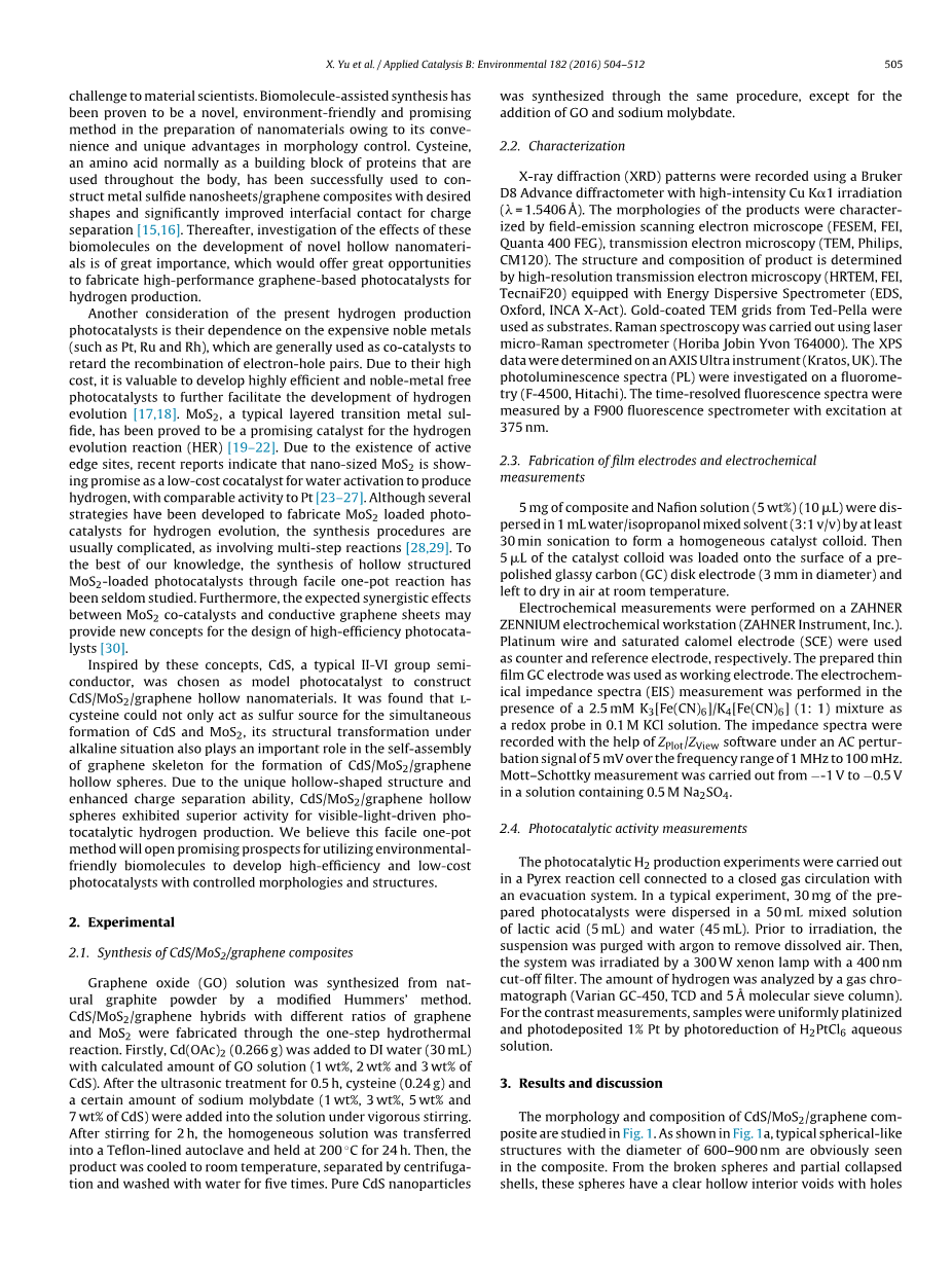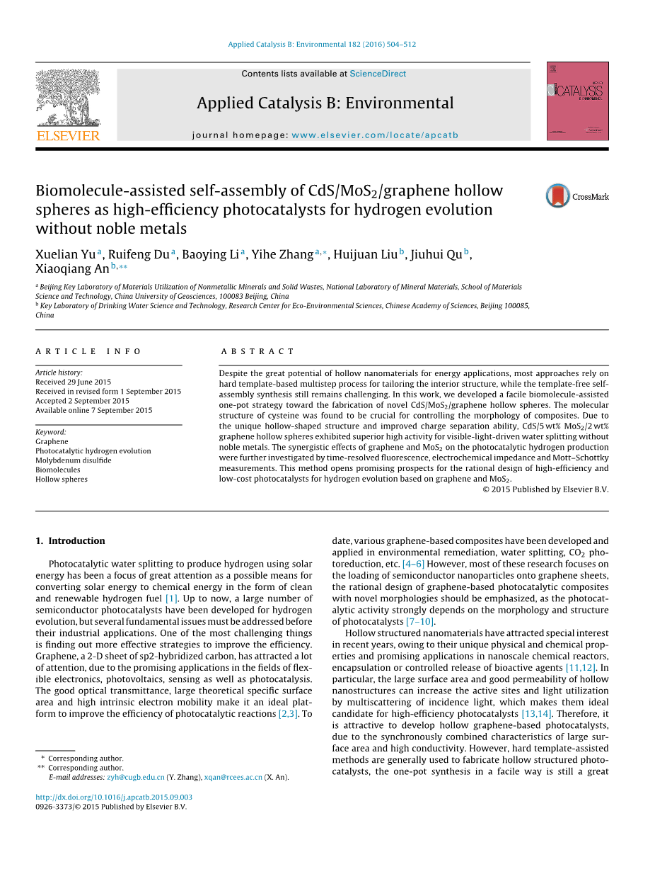 CdS / MoS2 /石墨烯空心球的生物分子辅助自组装作为无贵金属氢析出的高效光催化剂