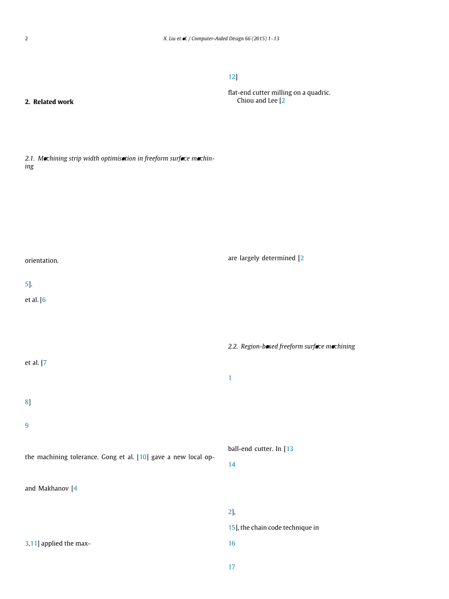 本部分将首先回顾最近关于自由曲面加工中加工带宽优化的研究工作。 然后对基于区域的自由曲面加工方法进行调查。
