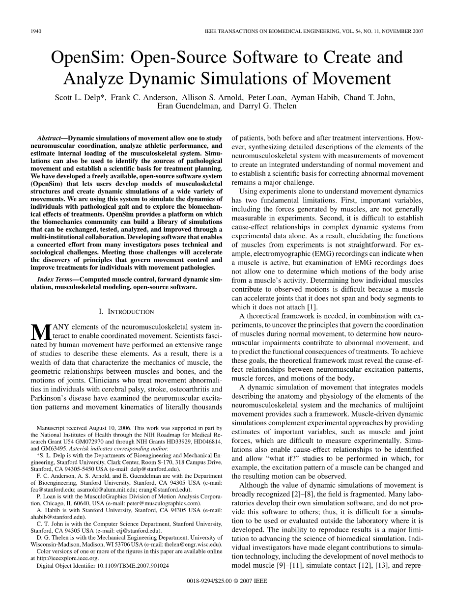 Scott L. Delp *,Frank C. Anderson,Allison S. Arnold,Peter Loan,Ayman Habib,Chand T. John,Eran Guendelman和Darryl G. Thelen