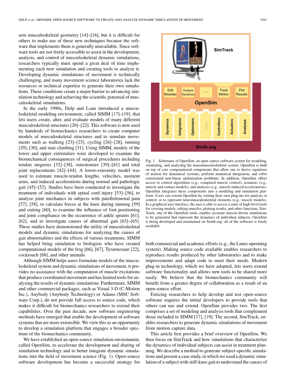 虽然运动的动态模拟的价值被广泛认可[2]-[8],但该领域是成碎片式的。许多实验室开发他们自己的模拟软件,并且不提供这个软件给其他人;因此,在开发实验室之外仿真很难使用或评估。无法再现结果是推进生物医学模拟科学的主要限制。单个研究人员对模拟技术做出了卓越的贡献,包括开发模拟肌肉的新方法[9]-[11],模拟接触[12],[13]