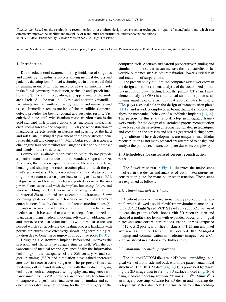 图1所示的流程图说明了用于下颌骨重建的定制多孔重建板的设计和分析的主要步骤。这些步骤解释如下。