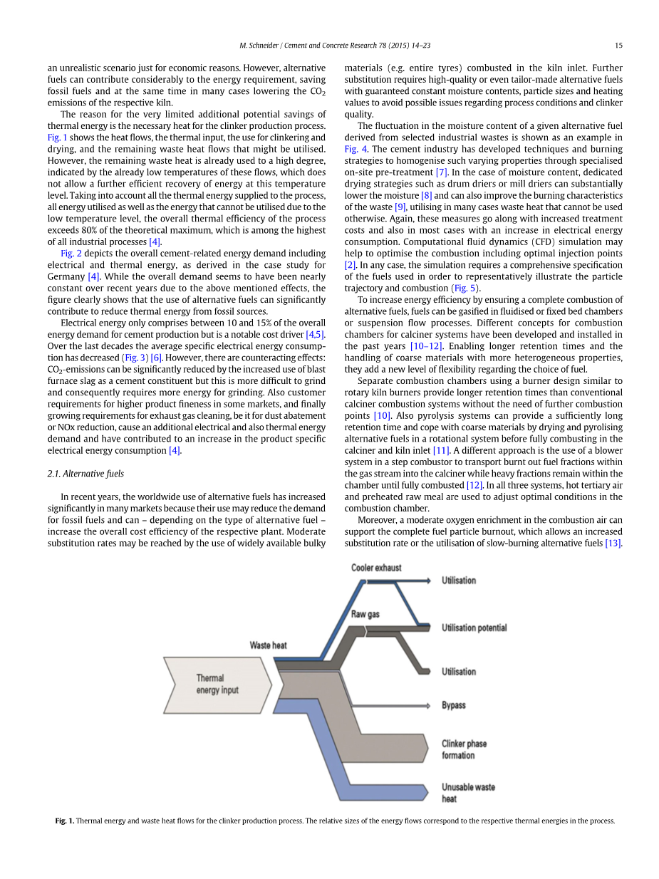 图2描绘了与水泥相关的整体能源需求电能和热能,如案例研究中的推导德国[4]。虽然总体需求似乎已接近由于上述影响,近年来不变数字清楚地表明,替代燃料的使用可以显着有助于减少化石来源的热能。