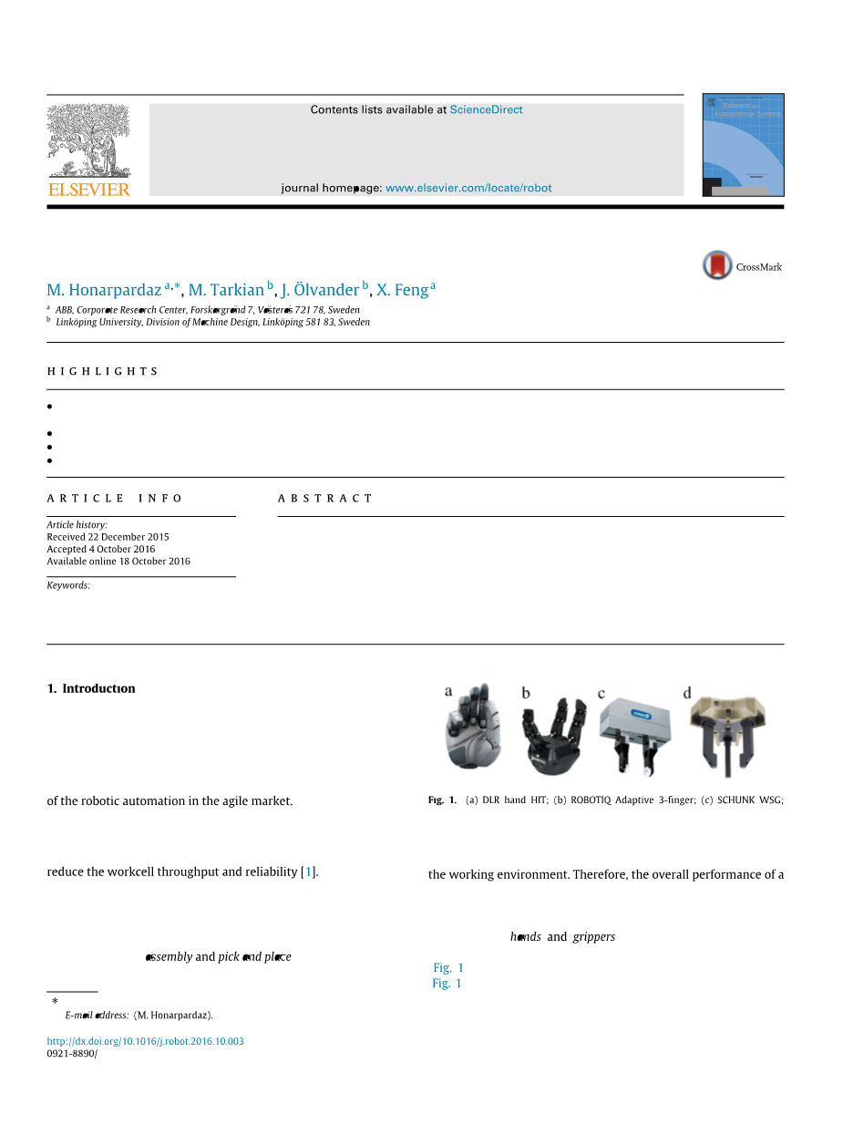 M. Honarpardaz a,*, M. Tarkian b, J. Ouml;lvander b, X. Fenga