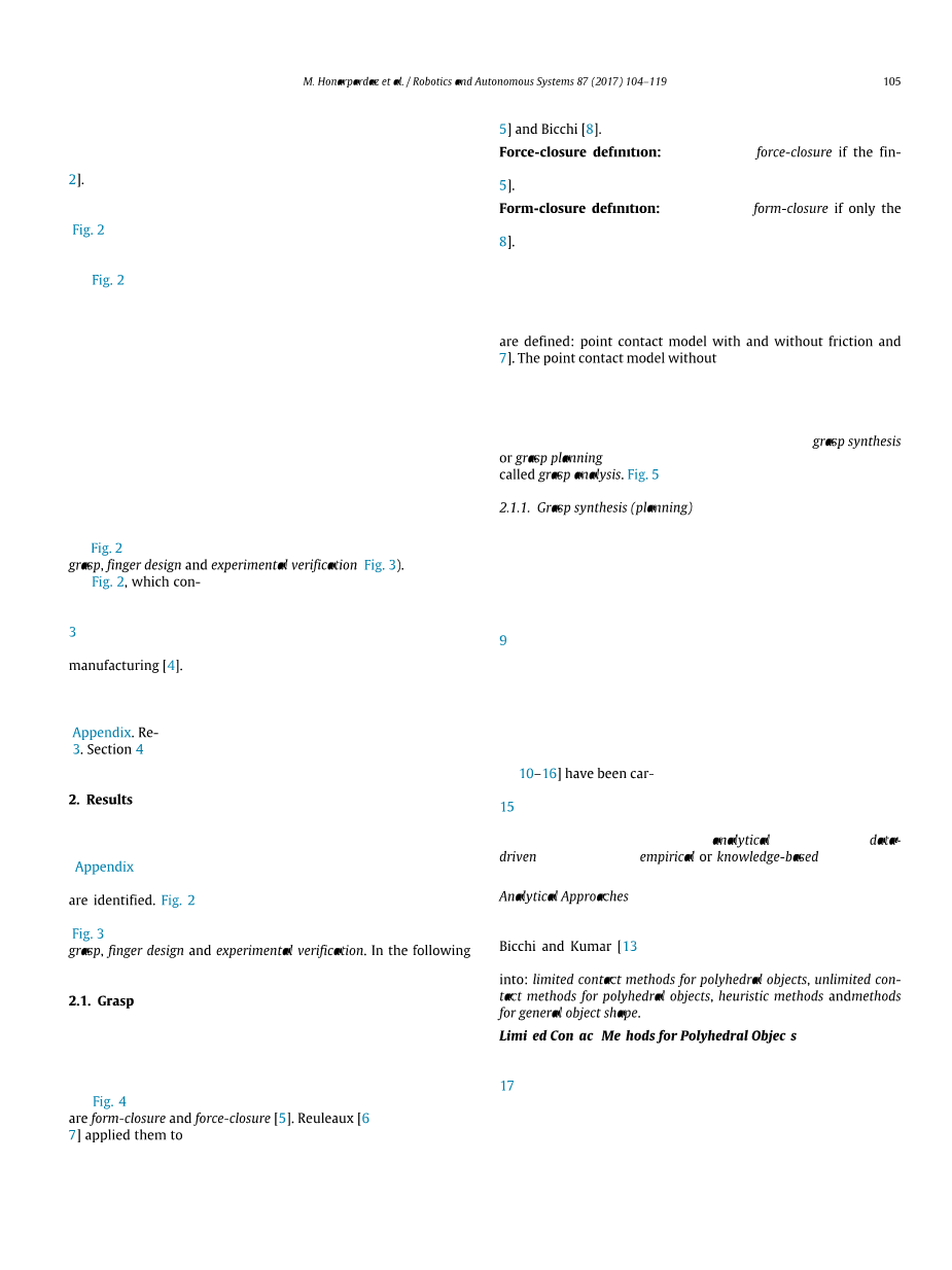 分析方法包括使用几何,运动学和动力学公式来验证抓握。Bicchi和Kumar [13]已经回顾了这些分析公式。在这项工作中,分析方法分为:多面体物体的有限接触方法,多面体物体的无限接触方法,启发式方法和一般物体形状的方法。