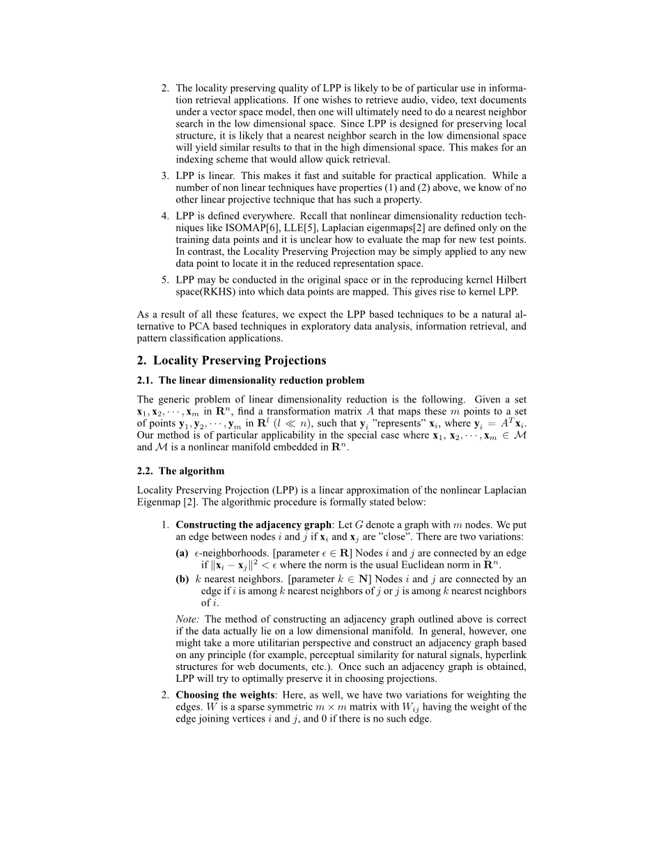 由于所有这些特性,我们期望基于LPP的技术在探索性数据分析、信息检索和模式分类应用程序中可以代替基于PCA的技术。