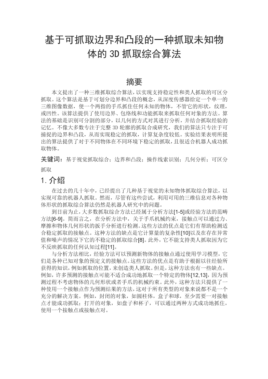 双臂机器人手爪抓取策略及姿态分析外文翻译资料 2022-05-27 22:40:53 英语原文共 16 页,剩余内容已隐藏,支付完成后下载完整资料 英语原文共 21 页,剩余内容已隐藏,支付完成后下载完整资料资料编号:[11688],资料为PDF文档或Word文档,PDF文档可免费转换为Word 原文和译文剩余内容已隐藏,您需要先支付 30元 才能查看原文和译文全部内容!立即支付 发小红书推广免费获取该资料资格。点击链接进入获取推广文案即可: Ai一键组稿 | 降AI率 | 降重复率 | 论文一键排版 PREVIOUS NEXT 您可能感兴趣的文章 流化床包衣造粒过程的监测与控制研究外文翻译资料 一种新颖的旋转流化床包衣细颗粒涂层的方法外文翻译资料 中国城市垃圾的处理和管理外文翻译资料 滤袋、气旋、和湿式除尘方法在真空吸尘器中的比较外文翻译资料 一个灵活的模型辗环机设计外文翻译资料 带有柔性转子的主动电磁轴承系统的识别外文翻译资料 柔性阻尼支承下转子振动特性实验外文翻译资料 MapReduce:超大集群上的数据简化处理外文翻译资料 垂直循环式立体车库的停车与乘车调度优化外文翻译资料 高灵敏度、高稳定性的自温度补偿电涡流位移传感器外文翻译资料