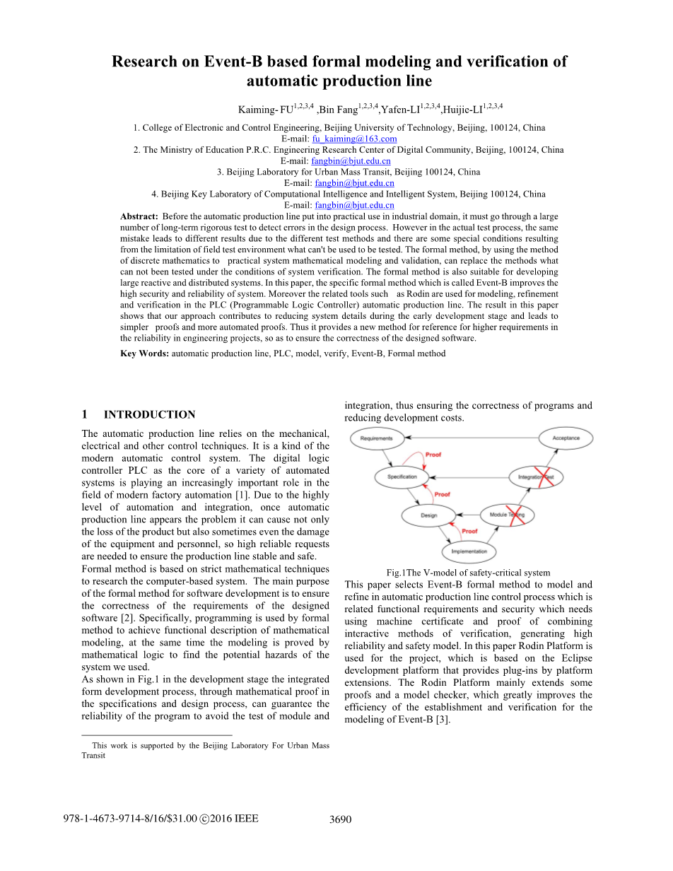 关键词:自动生产线,PLC,模型,验证,Event-B,形式化方法