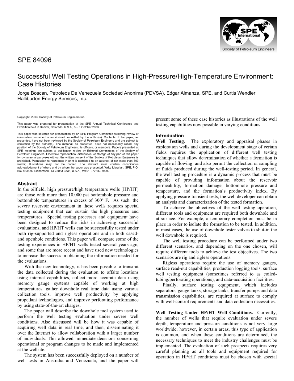 在HP / HT井条件下进行测试 目前,需要在严重的深度,温度和压力条件下进行评估的井数量在世界范围内并不是很大; 然而,在某些领域,这种类型的应用是常见的,并且在确定这些条件时,必须实施应对行业挑战的必要技术。对这种前景的评估需要非常谨慎的规划,因为在HP / HT条件下运行所需的所有工具和设备必须特别考虑运行限制。这些环境中的任何设备故障都会严重影响试井结果。