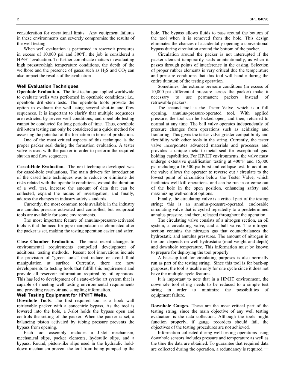 当储层压力超过10,000 psi和300ordm;F时进行良好的评估,这项工作被认为是HP/HT评估。为了使评估高压/高温条件的问题更加复杂,井筒的深度以及诸如H2S和CO2等气体的存在也会影响评估结果。