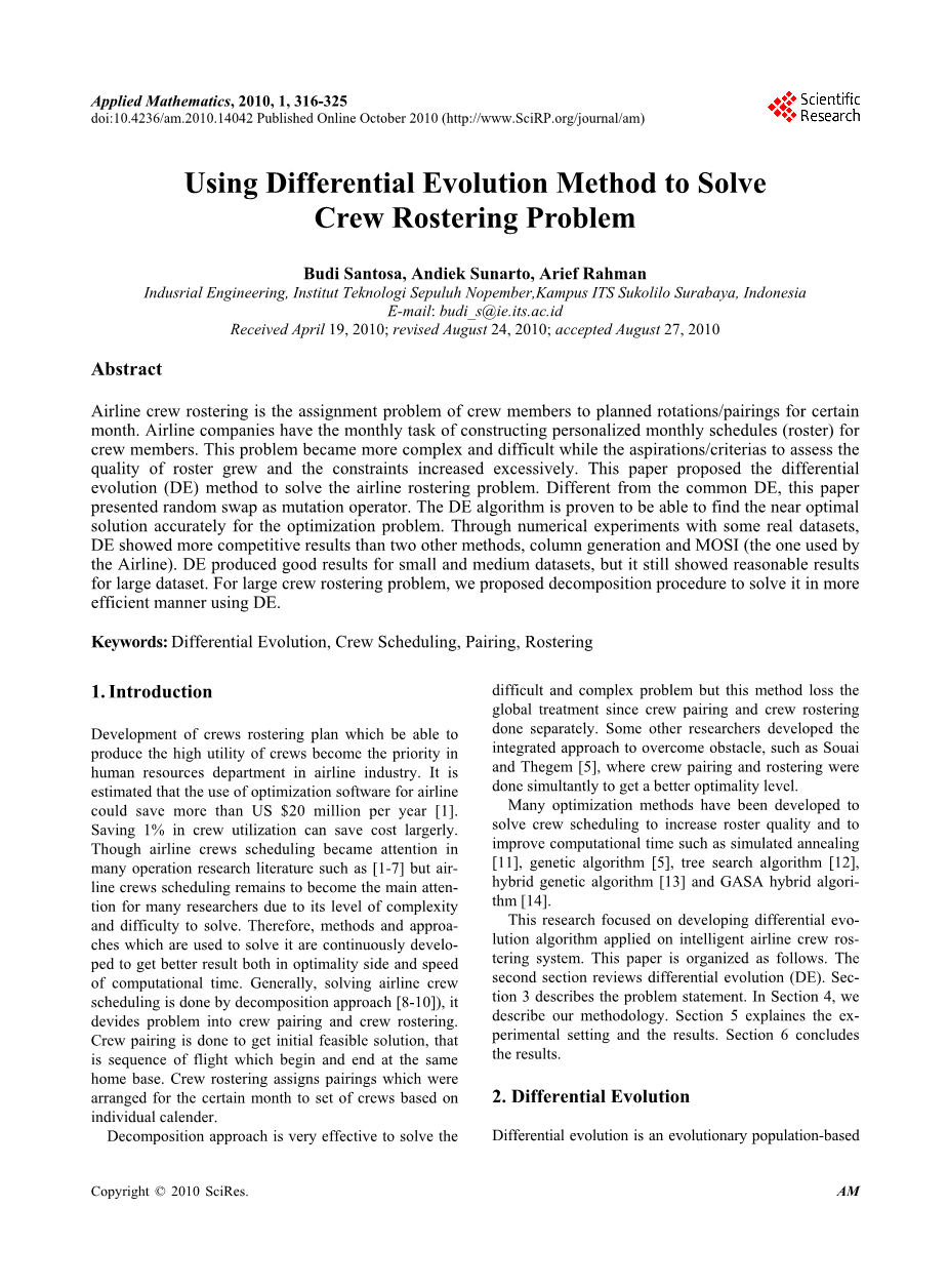 通过与一些真实数据的数值实验,DE表现出比其他两种方法,列生成和MOSI(由航空公司所使用的)更具有竞争力的结果。