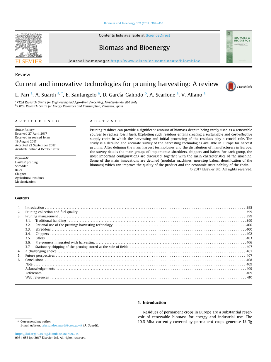 有关使用化石燃料及其消耗的环境问题促使可持续利用可再生能源的文化变革。 因此,在大多数欧洲国家制定了更严格的修剪规定[2] 已经导致了对修复复苏的重新兴趣。 在过去的十五年里,一些学者已经确定了用于收获,加工和传递修剪残留物的成本效益技术。 事实上,收获是影响修剪供应链产品质量,物流链类型和经济可持续性的关键阶段。 实际上,多年来,许多机器制造商已经开发了用于收集修剪残留物的专用工具[9e14].