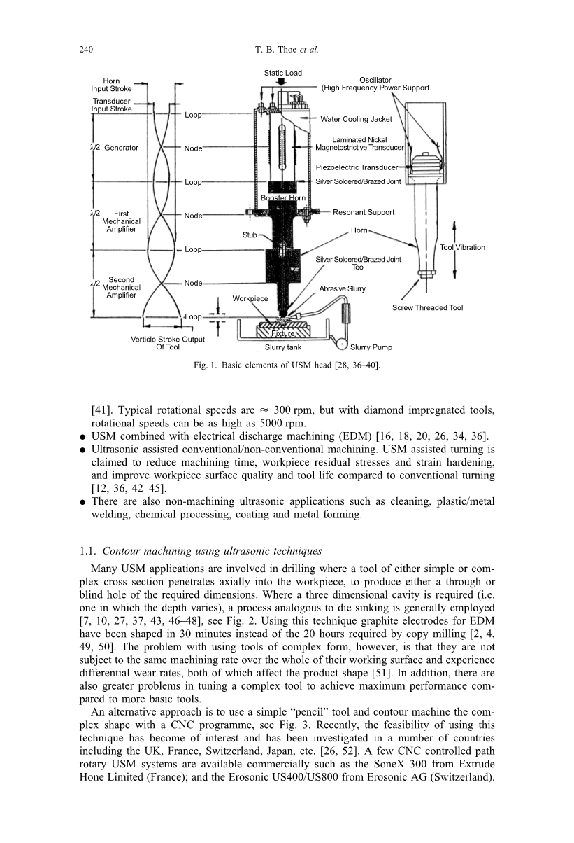 另一种方法是使用一个简单的“铅笔”工具和一个带有 CNC 程序的复杂形状的轮廓机,参见图 3。 最近,使用这种技术的可行性已经引起人们的兴趣,并且已经在包括英国,法国,瑞士,日本等在内的一些国家进行了调查。[26, 52]。 一些 CNC 控制路径旋转式 USM 系统可从市场上买到,例如 Extrude Hone Limited(法国)的 SoneX 300; 和Erosonic AG(瑞士)的 Erosonic US400 / US800。