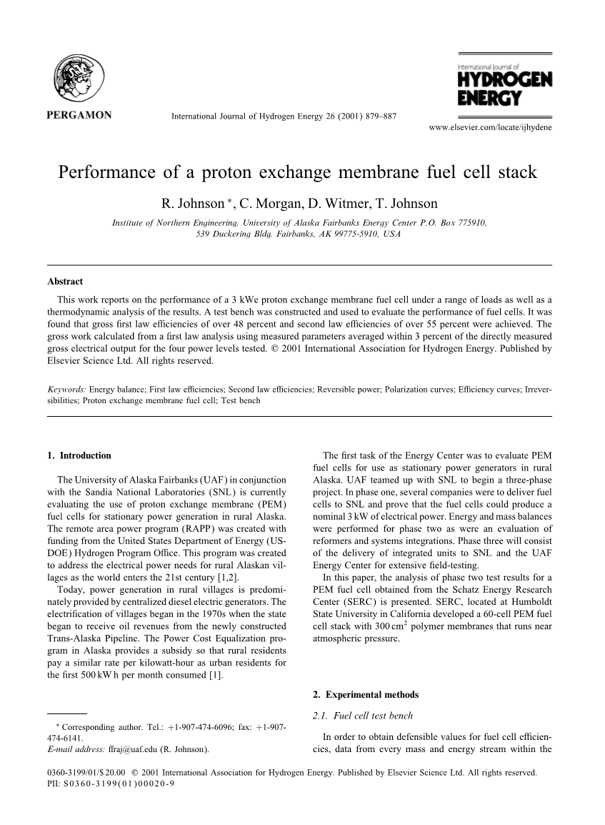 燃料电池的电力通过两种独立的方式通过实验测量。 第3次来自负载组上的数字读数,第2次来自分流器的堆电流和堆电压的乘积。 当电力的实验值和燃料系统的能量Huxes的计算值被置于等式 (2)(代表热力学的第三定律),计算与测试台上的测量相关的误差。 两次独立读数之差为2750 W运行时的61 W.当61 W除以净能Hux添加到系统中的氢量(5652 W)时,这导致1%的误差。对于4个功率水平,这个最大误差为2.6%。