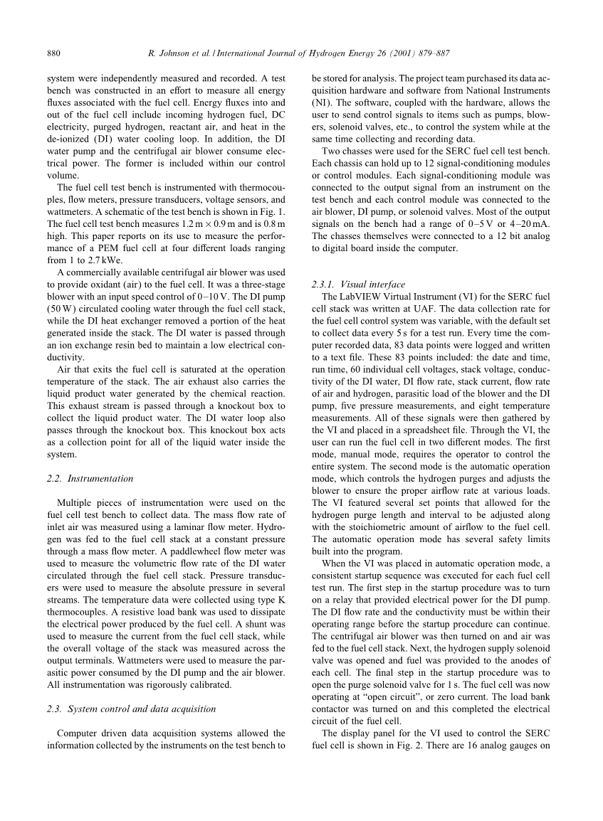 提供温度的VI控制屏幕,SERC燃料电池的速率,电压,电流和功率。 条形图显示燃料电池堆中所有60个电池的单个电池电压。