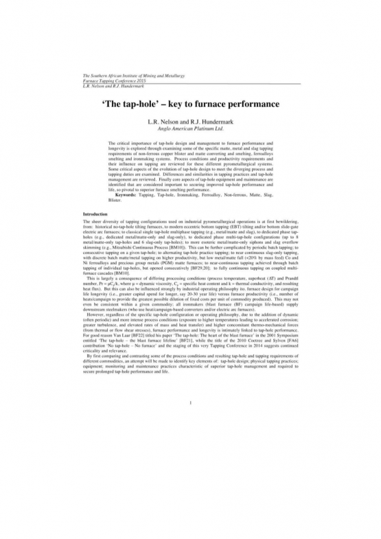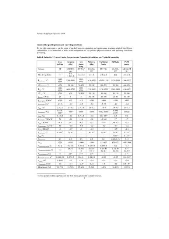 出铁口的设计和管理对炉子性能具有起决定作用的重要性,其体现在通过检查一些特定的锍冰铜,金属和出渣,以要求有色金属泡铜和无光泽转炉冶炼过程,和铁合金冶炼和炼铁系统。 工艺条件和生产率要求对这些不同的火法冶金系统的出钢量会产生影响。出铁口设计发展的一些用于满足分离过程和出钢情况的关键方面已被检查。 出钢的实际操作和出钢情况的差异和相似之处已探讨过。最后,出铁口设备和维护被认为是改进出铁口性能和寿命,提升优质炉冶炼性能关键方面。