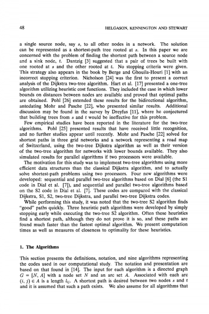 自50年代末首次提出求解方法以来,最短路径问题已成为组合优化、计算机科学和运筹学等领域的基本问题之一。算法和应用在这些领域的重要书籍中很常见(如[1,2,12,18,19,21,24,27,28,29])。这一问题的研究既有其优美的数学结构,也有其众多的实际应用。我们最近对这个问题的兴趣是由于我们在多指令、多数据(MIMD)并行计算环境中开发的几个数学优化过程中需要解决最短路径子问题。