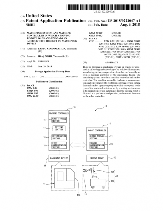 在生产现场中,存在希望相对于诸如机床的装载未加工的工件,和使用机器人从机床卸载已加工的工件的情况。 因此,需要机床的装载/卸载平台附近安装机器人并且可通信地连接机器人控制器(下文中称为机器人控制器)和控制加工装置(此后称为机器控制器)的控制器。 此外,还需要预先创建数据和机器人操作程序,使得机器人可以相对于加工设备实现工件的装载和卸载,并将数据与程序存储在机器人控制器中。
