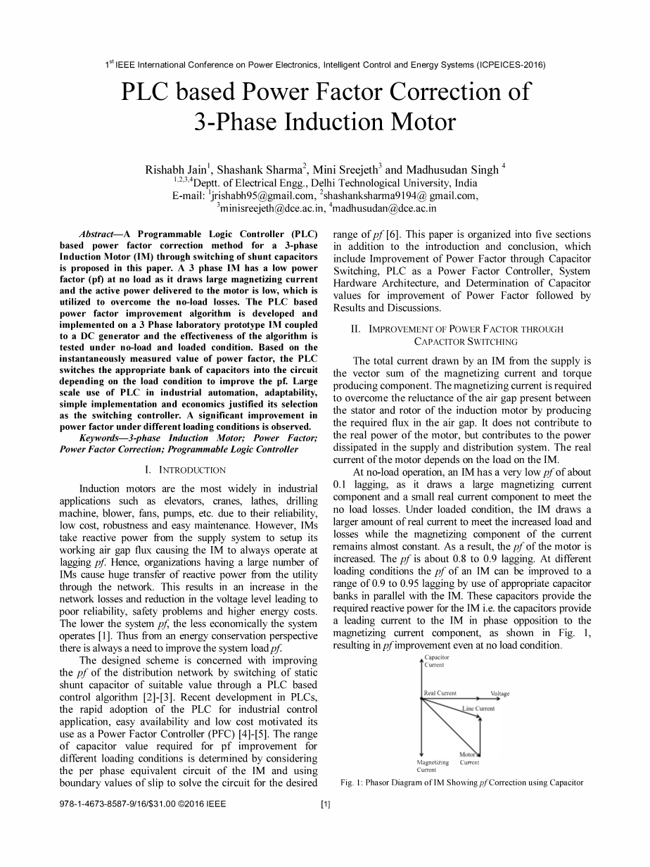 关键词:三相感应电动机;功率因数;功率因数校正;可编程逻辑控制器