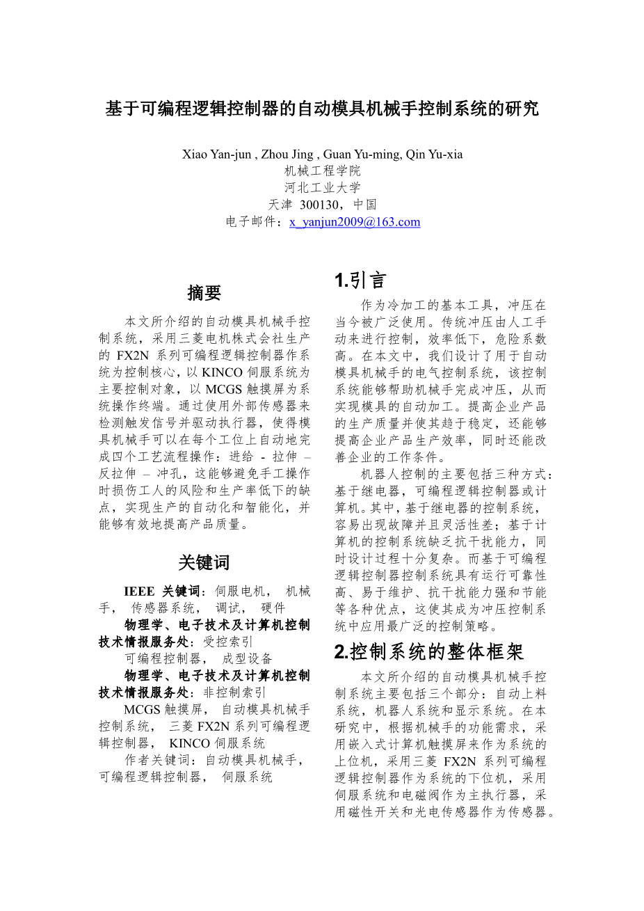 轴类零件上下料机械手设计与控制系统研究外文翻译资料 2022-07-25 12:46:13 英语原文共 5 页,剩余内容已隐藏,支付完成后下载完整资料 英语原文共 4 页,剩余内容已隐藏,支付完成后下载完整资料资料编号:[145094],资料为PDF文档或Word文档,PDF文档可免费转换为Word 原文和译文剩余内容已隐藏,您需要先支付 30元 才能查看原文和译文全部内容!立即支付 发小红书推广免费获取该资料资格。点击链接进入获取推广文案即可: Ai一键组稿 | 降AI率 | 降重复率 | 论文一键排版 PREVIOUS NEXT 您可能感兴趣的文章 流化床包衣造粒过程的监测与控制研究外文翻译资料 一种新颖的旋转流化床包衣细颗粒涂层的方法外文翻译资料 中国城市垃圾的处理和管理外文翻译资料 滤袋、气旋、和湿式除尘方法在真空吸尘器中的比较外文翻译资料 一个灵活的模型辗环机设计外文翻译资料 带有柔性转子的主动电磁轴承系统的识别外文翻译资料 柔性阻尼支承下转子振动特性实验外文翻译资料 MapReduce:超大集群上的数据简化处理外文翻译资料 垂直循环式立体车库的停车与乘车调度优化外文翻译资料 高灵敏度、高稳定性的自温度补偿电涡流位移传感器外文翻译资料
